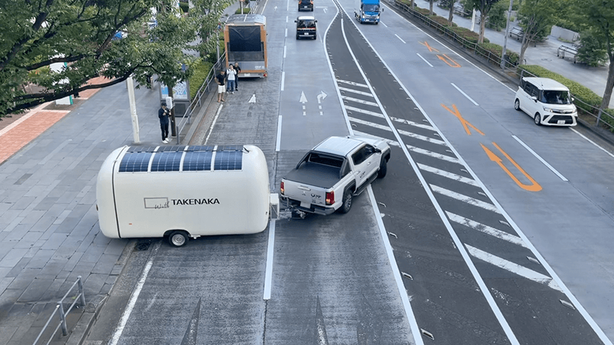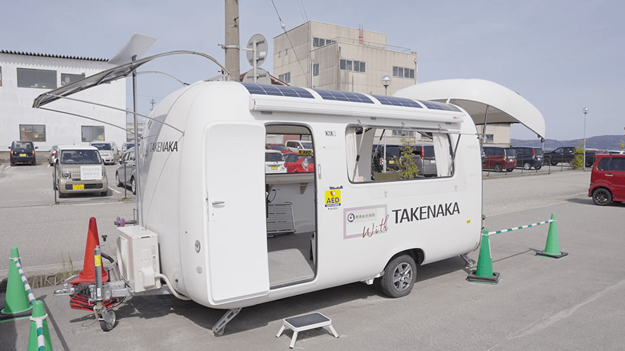 Solar electricity, remote payment processing and power management via satellite uplink. A unmanned and mobile convenience store was introduced during construction on the site of the Osaka, Kansai Expo to great acclaim. This system was developed by a Japanese high-tech manufacturer in conjunction with a major construction company and can be used in areas without existing infrastructure. Initiatives are underway for deployment in disaster zones and depopulated regions. This segment highlights the efforts of the high-tech manufacturer, and their hopes to solve social challenges through collaboration between industries, and helping to minimize environmental impact.