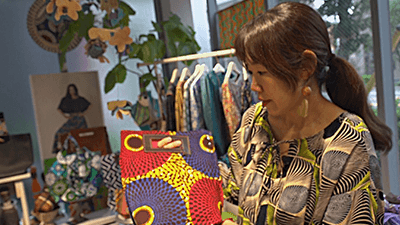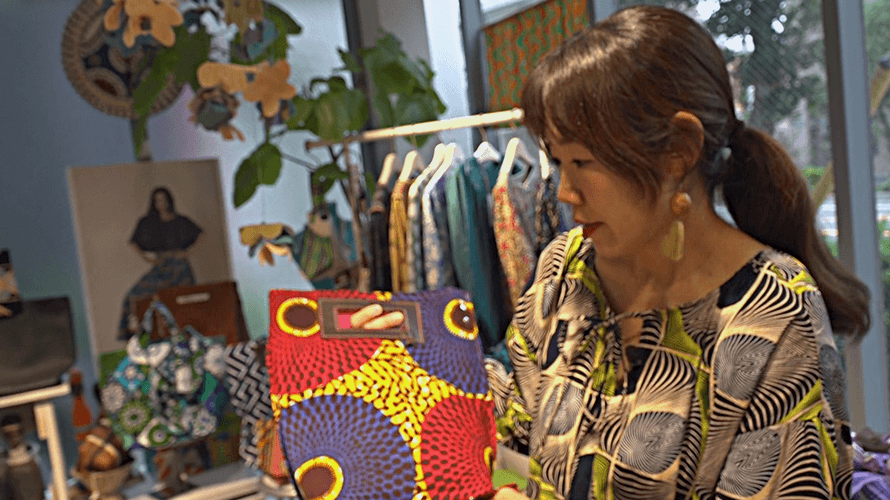Nakamoto Chizu, who was also stationed in Uganda, founded a Japanese brand that features handicrafts using vibrant African prints.